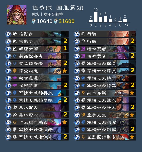剽窃贼是本文提到的第一个天梯能玩的新卡组……无论剩下的牌带的是奥秘体系还是其他节奏卡,剽窃贼的强度之源都在于变装大师加持之下前期蛮爪豺狼人低费进场或是准时双3-3的极强节奏。奥秘体系与节奏体系最大的区别在于在045和333两大赖皮卡之外的辅助进攻手段的不同,奥秘体系强调的是利用各种各样的奥秘来保护场面、打乱节奏,从而让延续攻势;节奏体系则使用各种各样的优质节奏卡来进攻。而与奥秘体系相比,节奏体系还有一个优势——由于卡位相对较松,非奥秘剽窃贼可以携带海盗谈判、美味风蛇甚至是吞噬者穆坦努斯以提高OTK抗性。