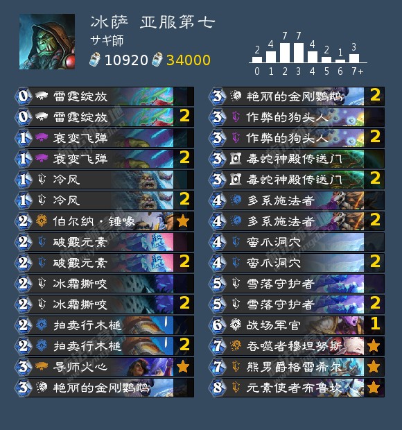 +始生研习*2、笔记能手*2、冰霜撕咬*2、马戏团医师、鱼斯拉、熊男爵格雷希尔
