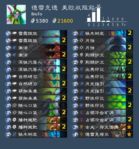 +新生刺头*2、活泼的松鼠*2、尖壳印记*2、野性印记*2、荆棘护卫、德雷克塔尔