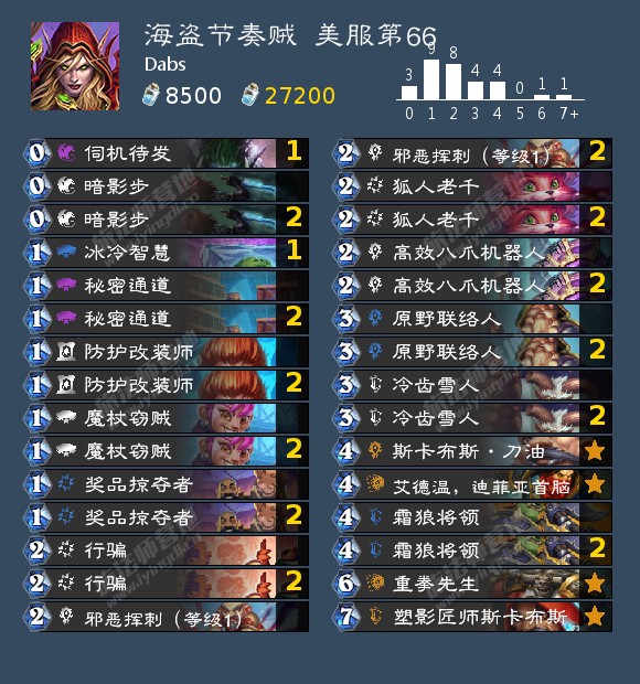 +美味风蛇、秘密通道*2、奖品掠夺者、吹嘘海盗、变装大师、魔像师卡扎库斯;