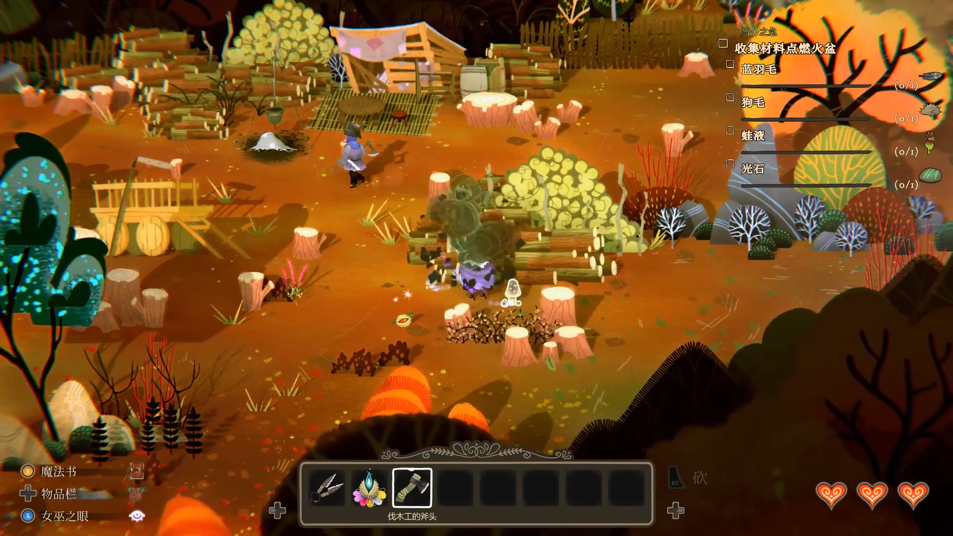随着剧情发展,女巫发现在自己的家门口附近已经找不到有用的东西了,她决定动身去附近的村庄,那些她从未去过的地方。