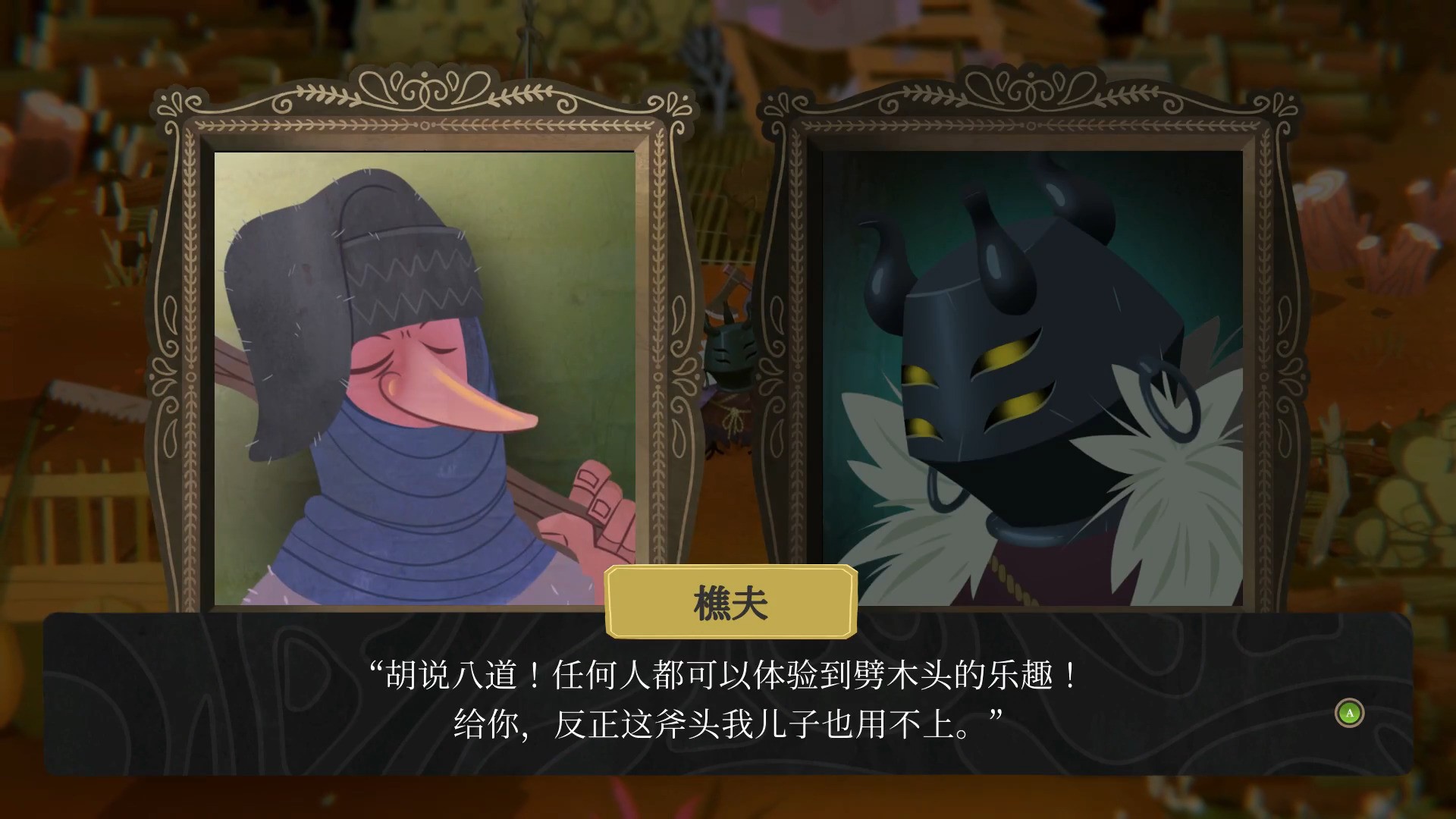 比如出现了这么一位樵夫,上来就要我们帮他砍树,一没说原因,二没提报酬。女巫也是心大,扛起个斧头就对木头进行了粉碎性打击,还意外获得了很多木头上的毒蘑菇。