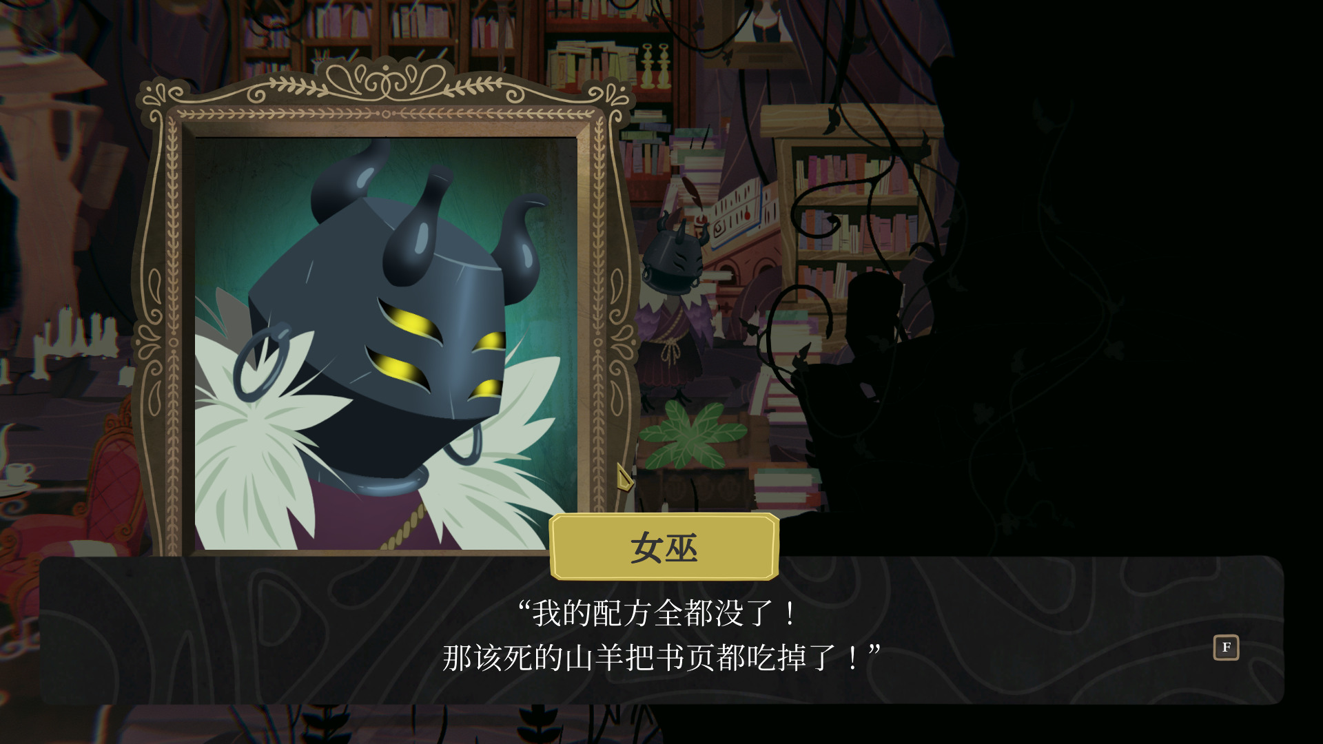 之前的那只老山羊又跑了过来,神奇的是它竟然能说话,并且还以一种老友的口气在和女巫交流,它说它可以帮助女巫找回所有配方。