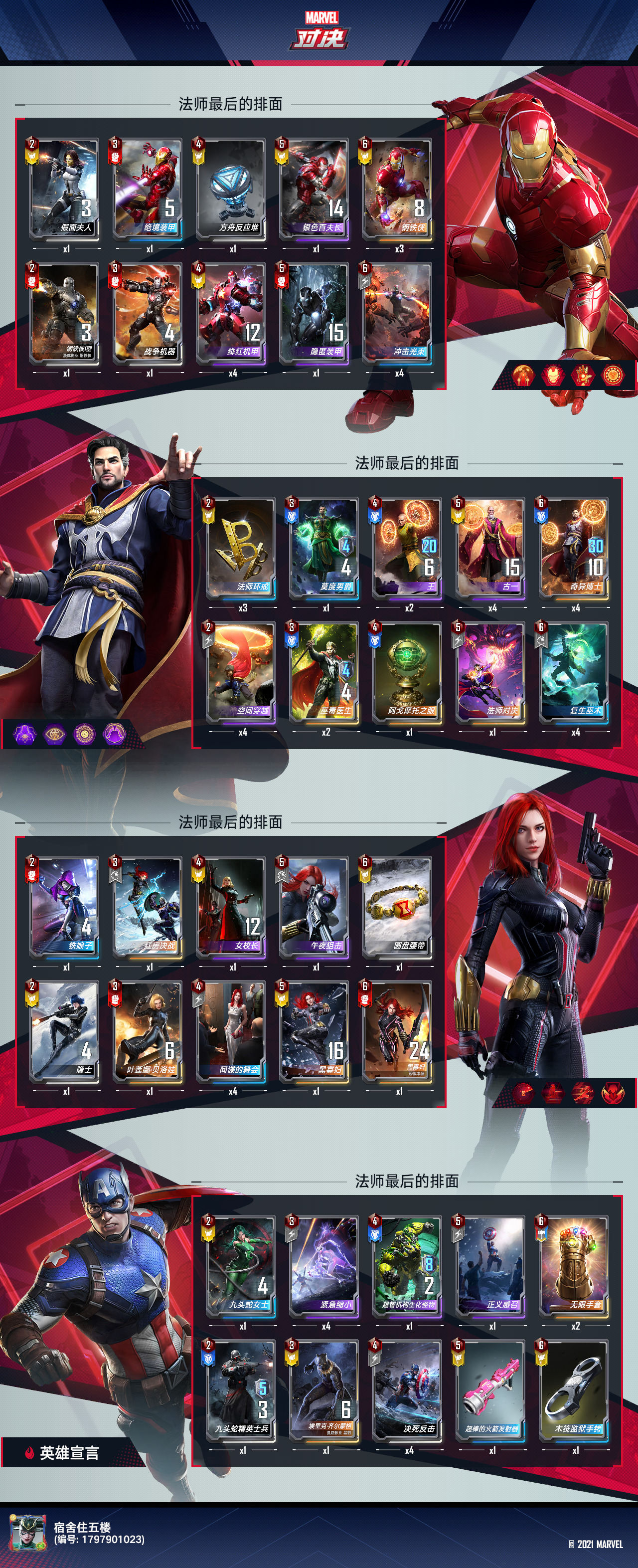 钢铁2星(悬戒) 钢铁侠1星(悬戒1) 莫度 古一 (手铐) 绯红机甲(悬戒)可看情况放一张王和莫度站16号位蛛丝喷射