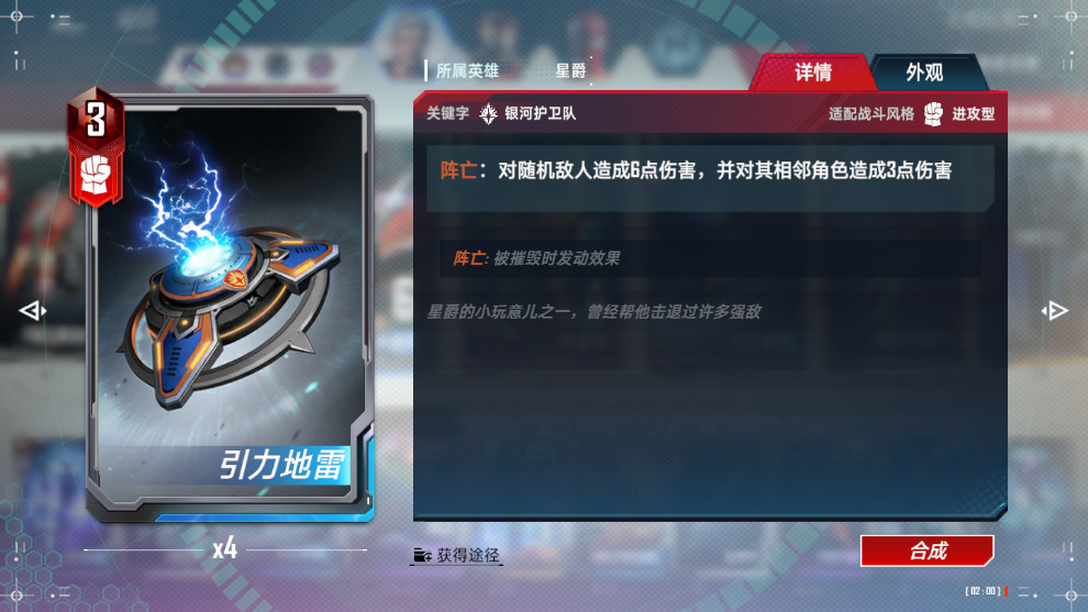 - 星爵3费武器带了地雷→可以偶尔破寡妇隐匿或打幻想 前期打工也不弱
