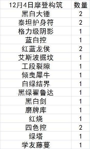 牌表如下