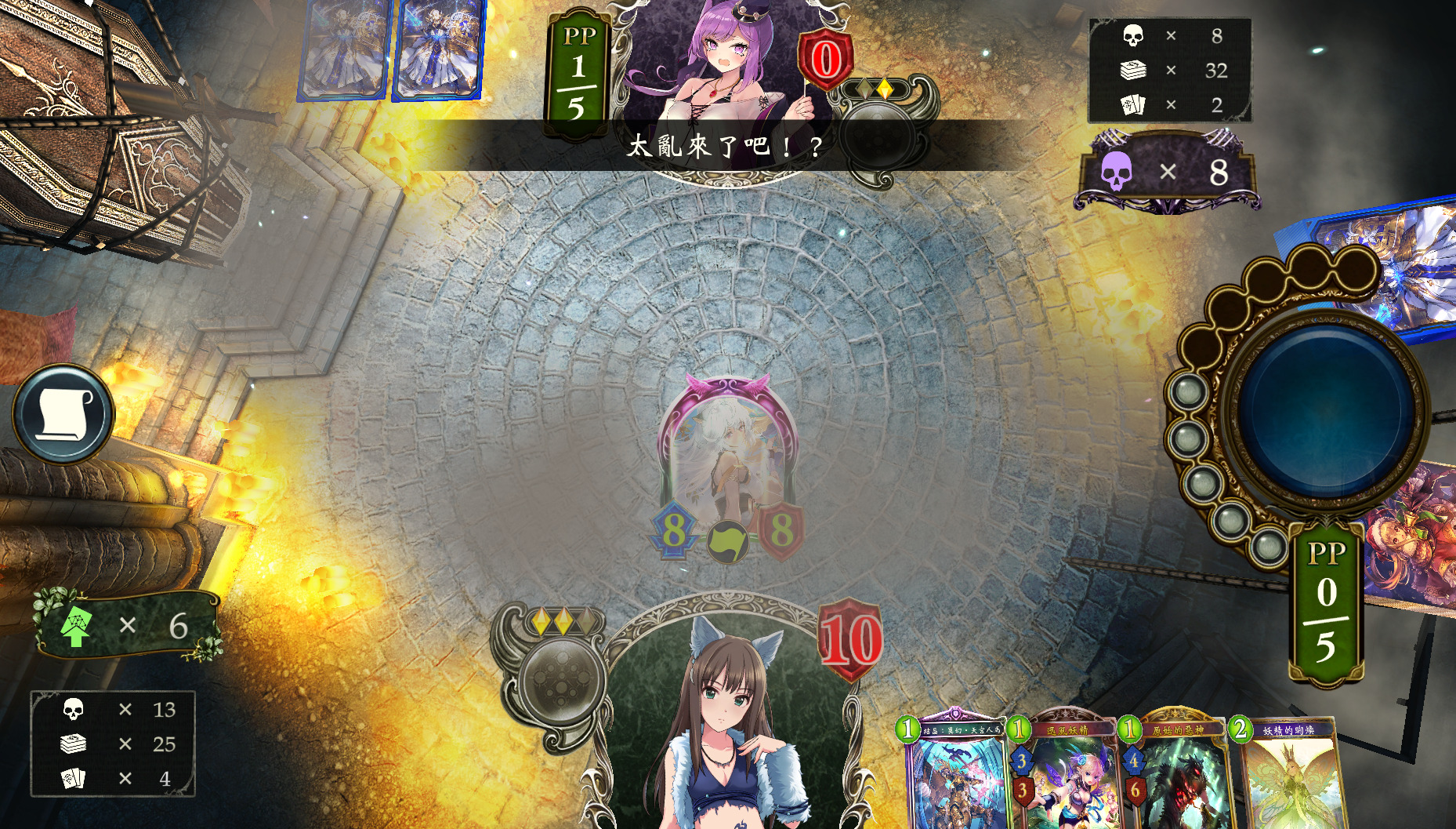 能获取0费牌的话,要计算第5回合的斩**害,优先采取叫杀打法。可以保留激奏牧地召唤的顺从的骏马,给下回合的万绿的回归·拉缇卡,但要避免被瞬召出的维尔达抢掉。