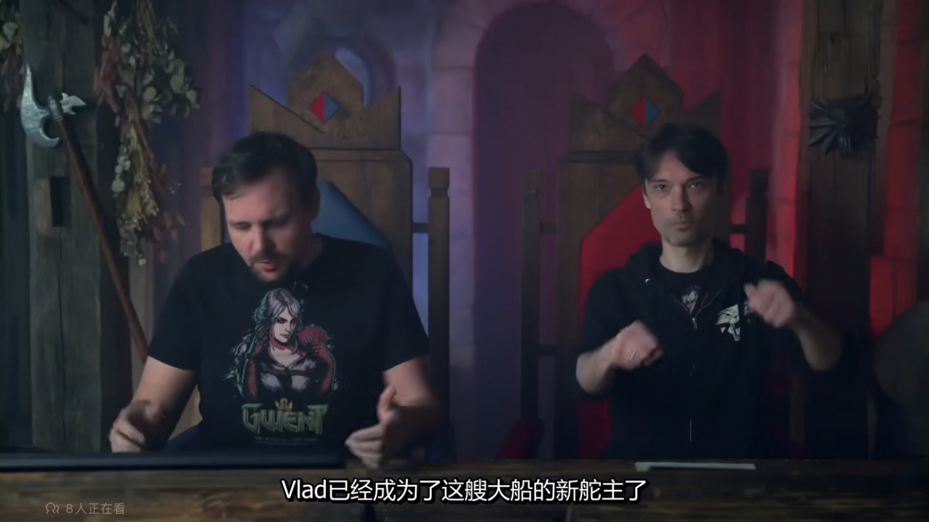 至于V哥,他首次亮相是在S2公开赛#4,当时的职位是常态化运营总监,主管电子竞技跟社区互动这块,比如锦标赛系统就是他来主要负责维护。V哥表示他做梦都没想到会来负责这个最喜欢的卡牌游戏,作为深度卡牌游戏玩家,他一直在玩各类卡游,但昆特显然是相当特别的:美术风格,核心玩法,都无与伦比。他决心好好经营昆特,让昆特未来发展得更好。