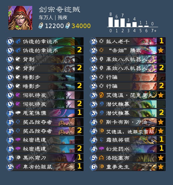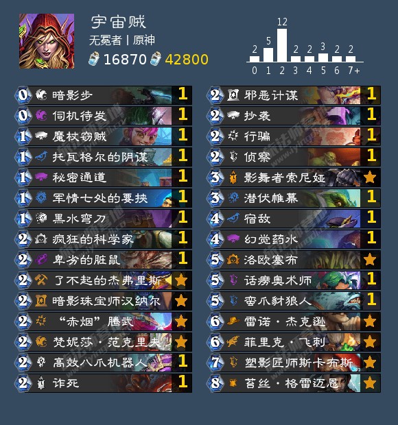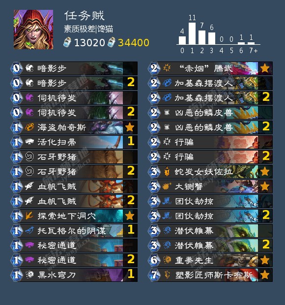 来自素质极差|馋猫的一套探洞贼,他用这套牌以44场61%的胜率在传说5000至8000分段划水。