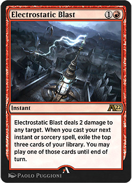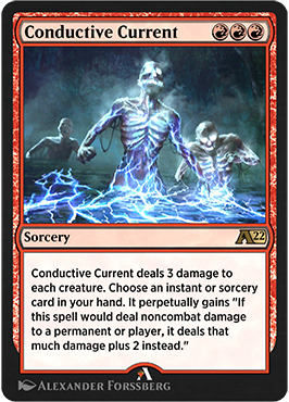 导向电流:有人问过这牌和霰散弹如何互动,我的理解是既然把“额外造成2点伤害”印在了受影响的牌上,那么风暴出来的霰散弹就都应该有+2伤害。因为风暴异能的效果是“复制”,复制是复印牌面的。