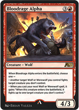 血怒首领:一直不错的狼,异能也没有特别电子化的地方(可能威世智认为“下一次怎样”的效果如果不限定在当回合的话很容易忘记,所以跨回合的下一次效果放在MTGA上了,可以理解),不过狼部族在史迹等于没有,还是在炼金里玩这牌吧。