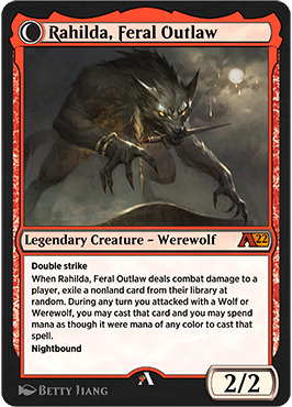 遭缉歌喉客拉希妲//野性狂徒拉希妲 :入夜了身材也不变大真是可以退出狼人圈了,正如我之前推测的,如果基尔山贼就是拉希妲本人,那她真是需要多多锻炼了,原来还是3/2~4/3人呢。她的异能非常类似劫富侠客,好处是一定能偷到货,但也更难触发:你得打中才行。你既不敏捷、身材又小,还必须打中,翻面也仅仅是先攻变成连击,自己还是个传奇,这些缺点让这张牌变得几乎完全不可用。所以说,艾卓王权真是无敌系列,没被禁的卡都碾压之后出的这些新牌。