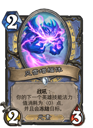 再说说火冲体系和双红龙的选择吧。火冲体系合解牌,站场,斩杀为一体,泛用性极高。尤其是玩过宇宙法的玩家都知道有很多费用留给英雄技能,新卡风雪增幅体的加入加快了英雄技能释放的频率,并且在很多时候在面对场上的大哥,冰冻拖回合数变得十分关键,如偶数术的巨人。同时面对快攻有个不亏身材的站场加上一点伤害的小解场,是一个多功能,符合体系的好卡。