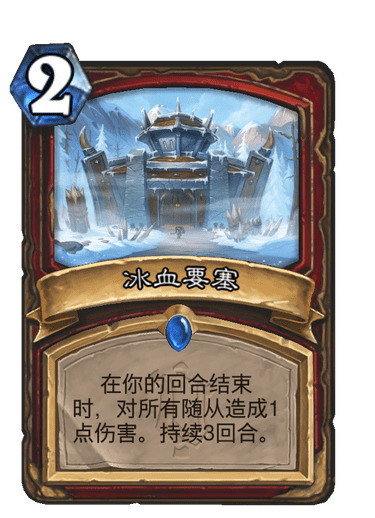 冰血要塞可以配合恒金巡游者,苦痛侍僧,沸血蛮兵以及石槌掌锚手和克雷什,群龟之王的暴怒来使用。其作为一张解牌本身也很优质,经常可以配合三把武器来补刀使用。