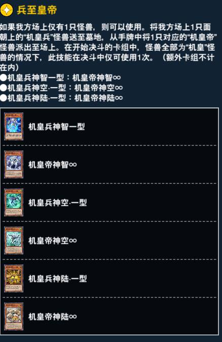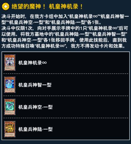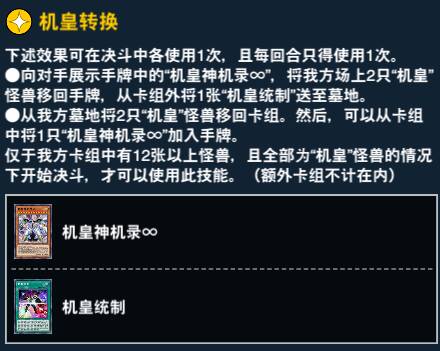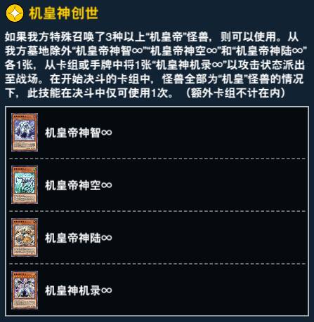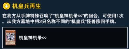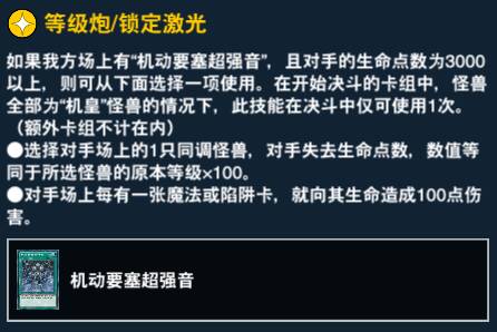 1级奖励,比较靠谱的技能,机皇兵厂从卡组拉然后叠放齿X就齐了。