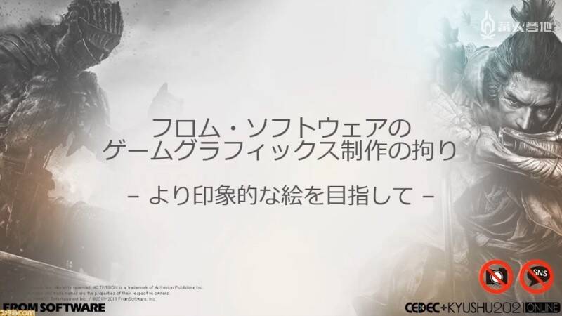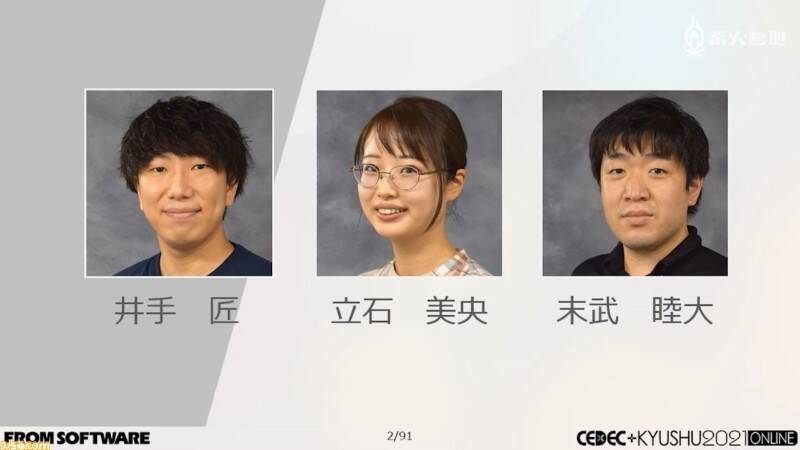 日本最大规模的电子娱乐开发者大会 CEDEC 的九州站「CEDEC+KYUSHU 2021 ONLINE」已于 2021 年 11 月 27 日~28 日在线上举行。其中,三位来自 FromSoftware 福冈工作室的成员在 27 日与大家分享了名为「FromSoftware 在游戏图形制作方面的追求 — 如何让画面更加令人印象深刻 —」的主题演讲。