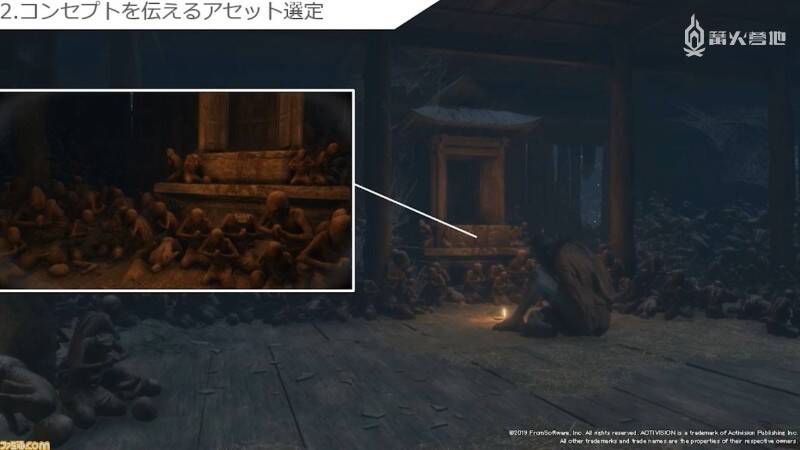 FromSoftware 的游戏经常会放置一些具有特色的雕像和照明设备,也就是立石所谓的「FromSoftware 经常摆放和尸体相关的东西」,笔者听到这里忍不住笑出了声,这么一说好像确实如此。