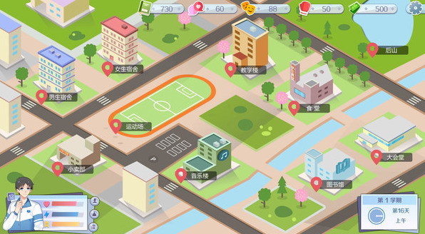 学校里最受欢迎的女生叫韩梅梅,我不介意和她来一场疯狂的恋爱。不过我的野心不止于此,校园里还有其它8个可爱的女生,包括美丽的小高老师。和她们交往并让她们爱上我,这才是我的终极目标。天哪,如果游戏世界里有“重婚罪”的话,那我是时候逃亡非洲了。
