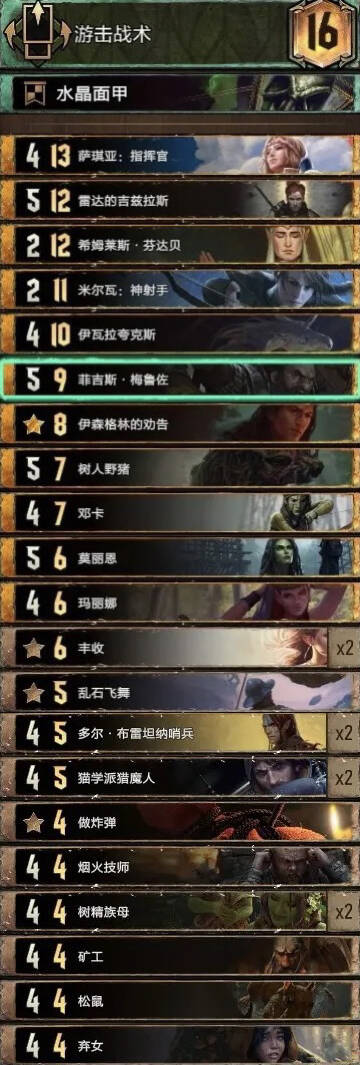 8P8和落雪+技能和各种组件还有吉尔曼生牛配士兵体系歌能撑一小局。最好是R1用滤牌套,核心卡需求低。这套可以保证不会鬼抽而且基本能滤完,R2能逼就逼,丢点组件或者抽士兵核心卡都行。点也很大,而且不怕控制,自己还带控。 我这几个赛季卡分了上职天或者上分都是这套,米尔瓦之类的一逮一个准,打吸血鬼不太行,我打了两把吸血鬼,需要针对的太多了。