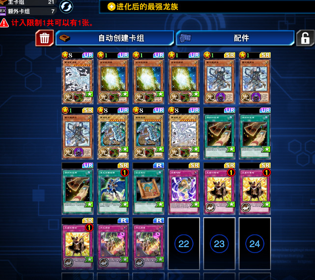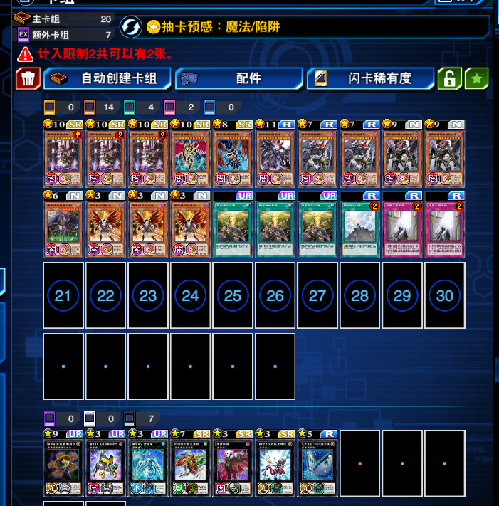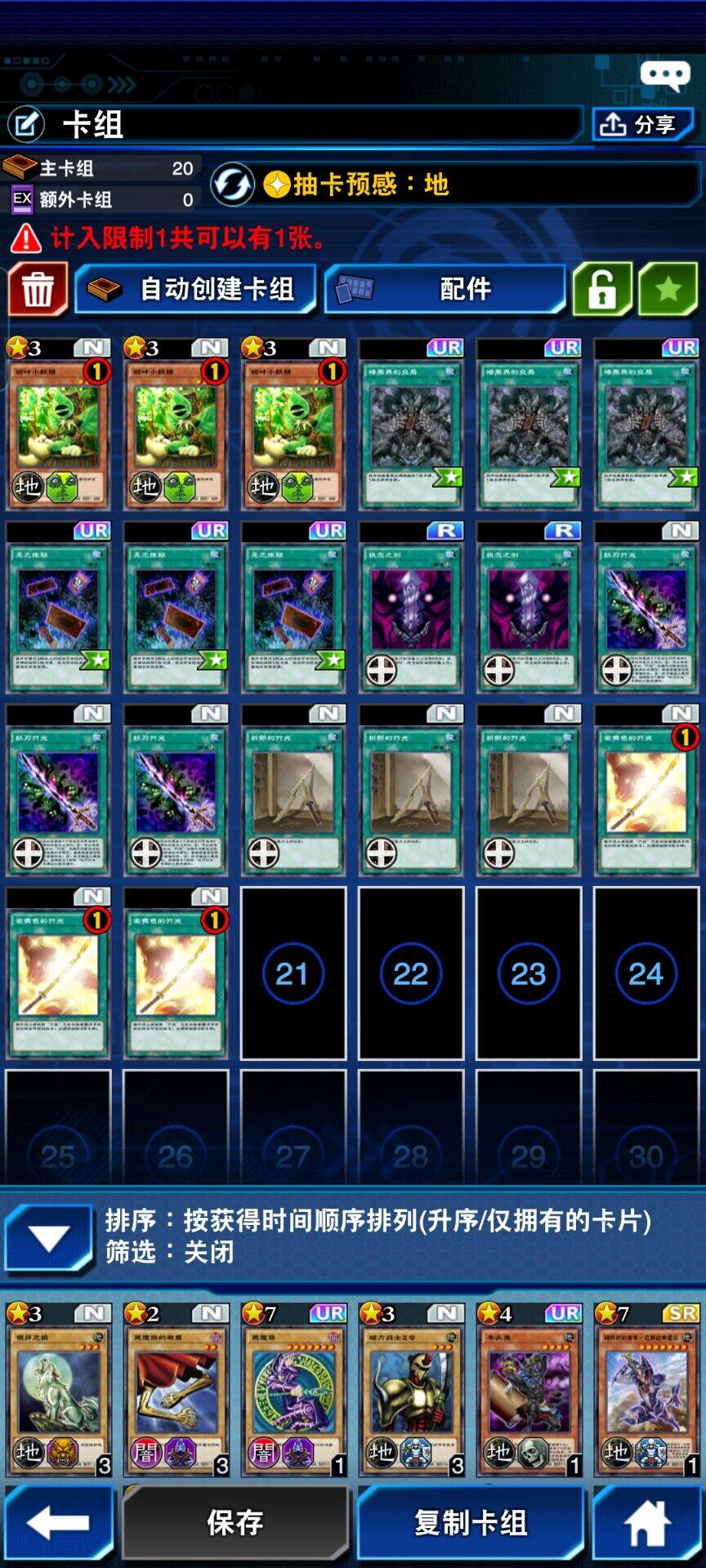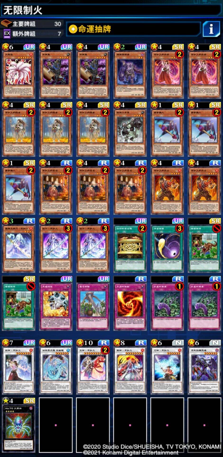 不知火也是卡表大户,整套卡组禁止卡、限制123都有,可以想想完全体的不知火在DL中是什么强度。可惜的是割草被30卡水机天生克制,缺乏其他堆墓手段的情况下无法突破水机的场面。