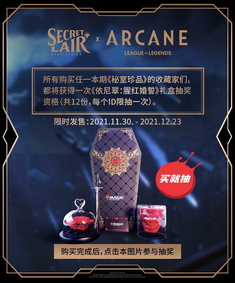 别忘了,所有购买了任一本期《秘室珍品》的牌手,都机会获得《依尼翠:腥红婚誓》限量款纪念礼盒一份(共抽出12份,每个ID限抽一次)。