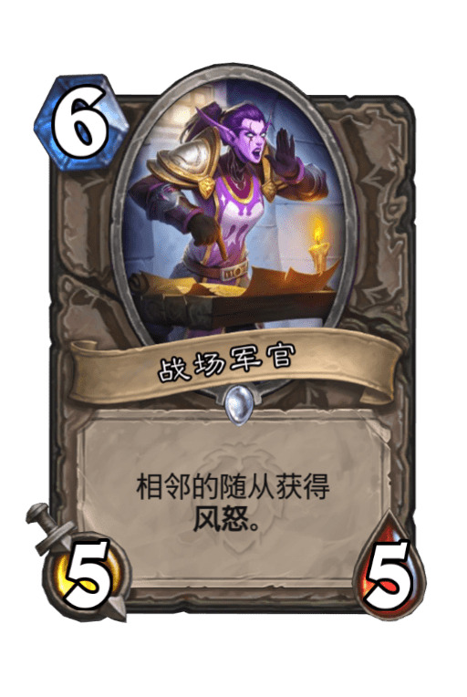 核心橙卡。用来解场的,主要是针对对方铺了一地的怪。需要注意的有两点:给他buff时不要套圣盾否则会触发不了暴怒;暴怒比亡语要优先触发。