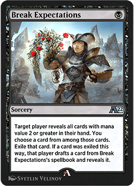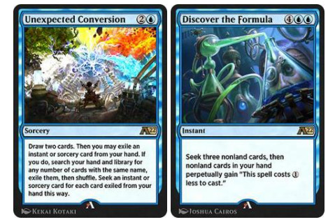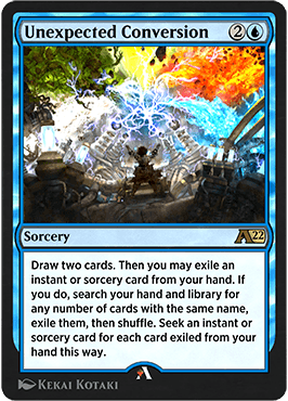 我想给自己低估这两张卡找个辙——我们以前在万智牌里没见过这种牌嘛。意外转化的效果读起来像是个不知所云的卜卦。实际上,它是一个能够改变我们构筑原理的工具。作为一个万智牌手,你已经学会去接受在一些对局中抓到没用的死卡,比如在控制内战里,我不想抓到渐失希望,但我会想办法从中榨取一些价值出来。