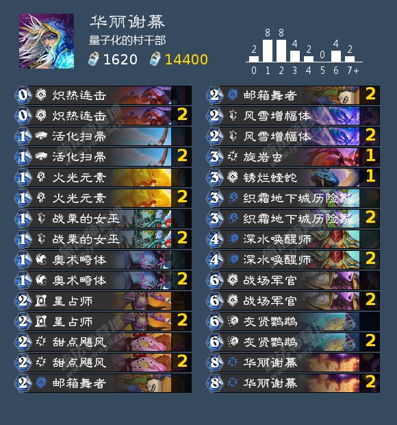 第二类包括炽热连击、战栗的女巫和邮箱舞者,它们的作用是让8费的华丽谢幕能够提早打出,让我们能尽快拿到对局的主动权;