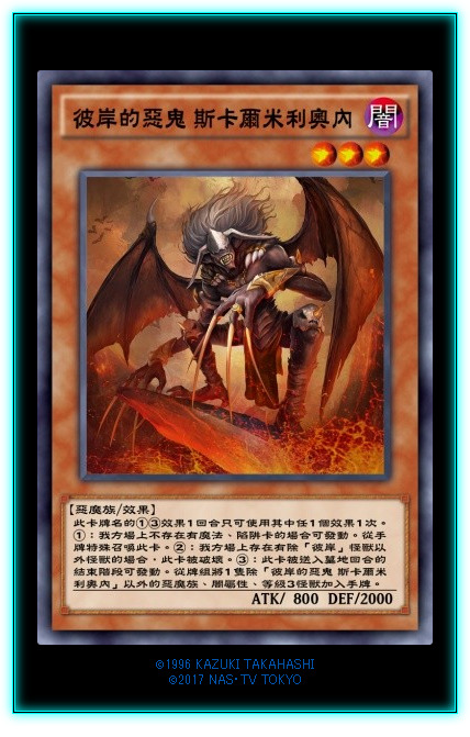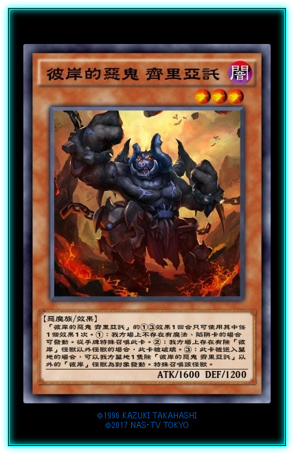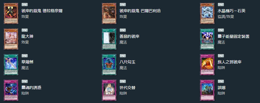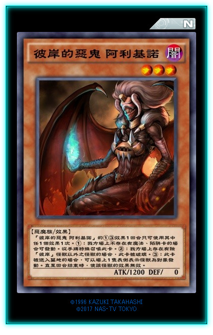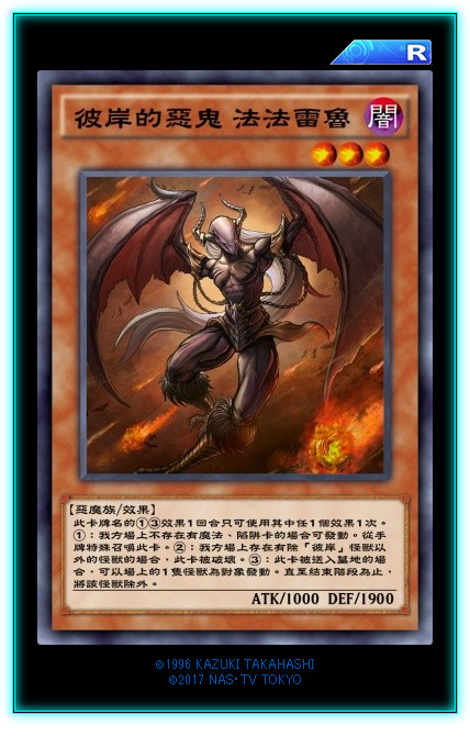 彼岸下级怪兽的①②效果我就不赘述了,都是一样的。。。。。这卡强就强在它的③效果是送墓检索暗属性恶魔族等级三的怪兽。除了可以检索本家其他的彼岸下级怪兽,还可以检索很多奇奇怪怪的东西,比如三眼怪、导游(虽然DL没有)等。