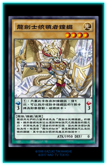新字段【龙剑士】。目前A5世界路人有一套龙剑士卡组,也就仅此而已了。本家优质通常下级,灵摆效果是炸摆子。