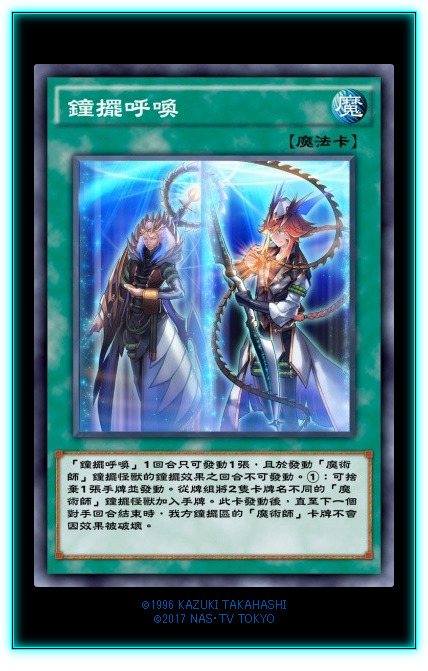一卡检索两个【魔术师】摆子,而且还能保摆子一个回合不被破坏,一个字,强。顺带一提,这张卡OCG刚放3没多久哦。