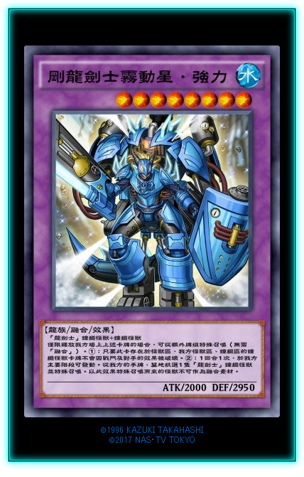 龙剑士本家融合怪,接触融合,出场还是挺容易的。给自己怪兽区和灵摆区的灵摆怪兽都提供了不被战破和效破的抗性,本身自己2950的守备力也非常扎实。②效果还能一回合苏生或者从手牌拉一只龙剑士灵摆怪兽。虽然拉出来的怪不能做融合素材,但是以后龙剑士本家超量和同步放出来就可以调或者叠了。