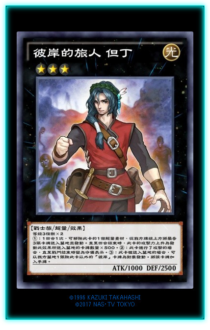 彼岸真大哥,辣个男人他来啦!!!彼岸卡组核心终端,本家泛用R3大哥—但丁!!!①效果盲堆墓,因为彼岸下级怪的③效果都是送墓即起效,而且彼岸卡组因为自身的②效果,本家怪兽浓度非常高,所以这个①效果基本约等于精堆。还能给但丁提升共计1500点的攻击力。非常强力。②效果,攻击后转防,防止对手回合被轻易破坏。③效果,送墓回收本家卡牌。