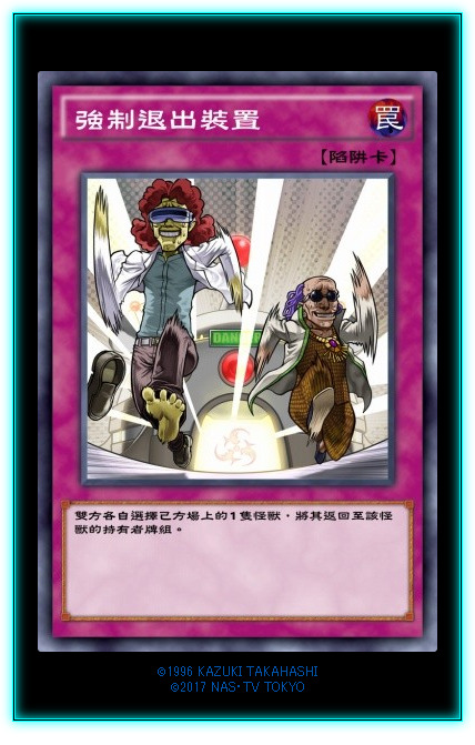 强制。。。额,退出装置???这差一个字真的差好多。算是一张泛用解牌吧,但是如果没有像邪蚀雷鸟这种卡配合的话,本质是2换1,是亏卡的。除非你弹掉的对手的怪非常强