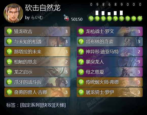 依赖快速跳费并及时抽到龙枪战士·罗文,好在过牌能力出色。