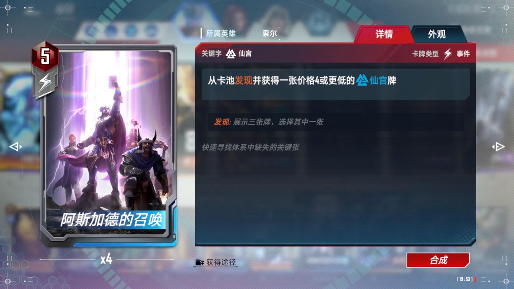 除了一种特殊情况,就是我们已经找到三张终幕的情况下,场上有随从可以碰四,我们可以升四本尝试奖励找一手阿斯加德的召唤