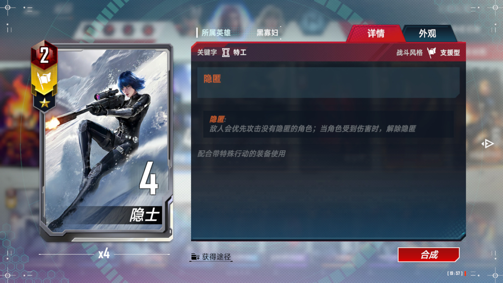 这个技能的搭配就只需要我们在开局的时候送掉我们的特工就行,最好的选择就是隐士。四攻隐匿最好送死。