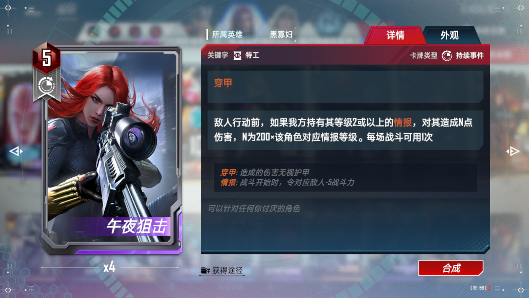 第四回合:选技能,又是一个关键回合。如果选到的是寡姐的敏捷移动。直接开始不当人。SL仙宫终幕卡。凑齐我们需要的核心。角奎、大师以及仙宫护盾。其中角奎可以直接套盾,如果抓到九头蛇,建议可以直接把九头蛇在手上囤一波,包括特工随从。模仿大师在前期佩戴振奋锤或者仙宫剑会更强一些。