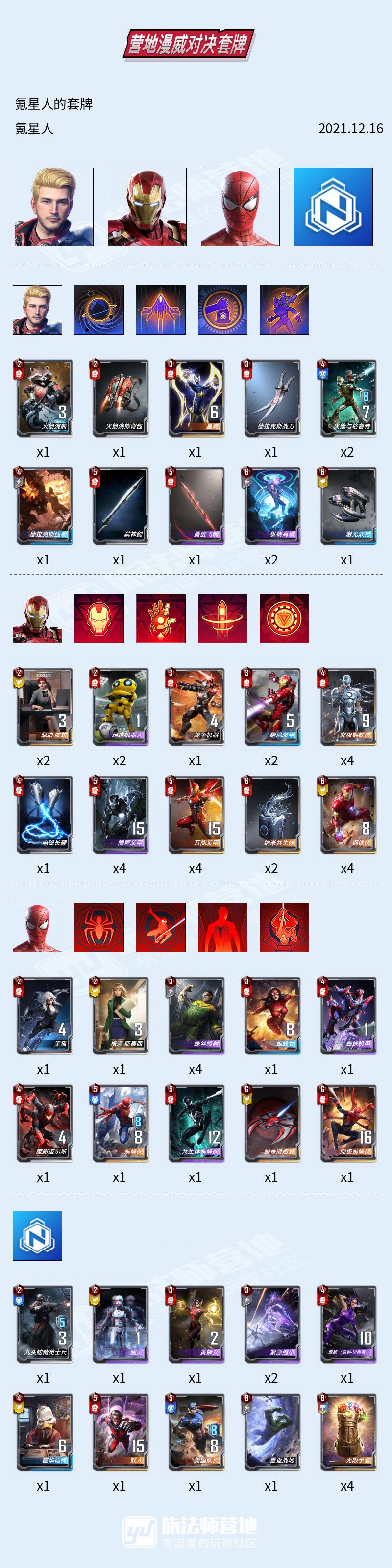 蚁人1-2张(氪星人只带了一张,因为有红浩克,究极钢铁侠,万能机甲,以及佩戴电磁长鞭,一星蚁人足够,看个人喜好吧)