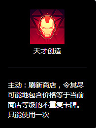 4回合,若拿到能量核心,我们可以白拿一张4费以下钢铁侠卡,究极钢铁侠最优选,其次是绯红机甲和电磁长鞭以及超频。连升2级,第二张我们可以白拿一张6费以下的钢铁侠卡,万能机甲最优选,然后是钢铁侠,隐匿装甲,究极钢铁侠,装甲能量剑,以及鞭狂等。有7宝石以上我们可以搜一手,拿我们的阵容卡,和工具人卡。(没有拿到核心,我们根据技能T度选择技能,或者直接拿倒了霉技能)