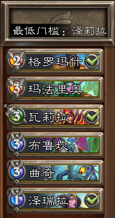 之所以称之为“门槛最低”,是因为这套阵容基本上是“有瓦必能玩”。大德玛法里奥和吼爹格罗玛什,一个好刷一个直接送,泽瑞拉、曲奇、布鲁坎都是“货真价实的蓝卡”(你品,你细品~)。