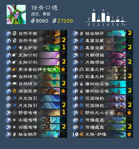 来自春哥的一套任务口德,他使用这套卡组打到300+名。