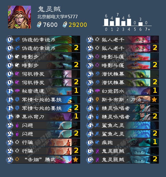 来自北京邮电大学#5777的一套鬼灵贼,他使用这套卡组打到了第88名。