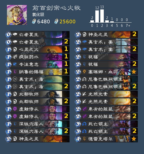 构筑选取:在构筑这套卡组的时候,我参考了之前狂野日报的盗宗和剑宗暗牧,但是实战下来感觉面对海盗战的炮火和冰萨的冻结,铺场后才能提供伤害的卡组很难占到优势,尤其牧师的铺场能力再怎么说也高不过超生德。同时,快攻卡组是没有资本携带过多的针对卡的,我们想要反制对手只有一个选择,那就是超量的伤害,而且最好是直伤。之前考虑过加入亡语随从和暗影系的复活法术来提供额外直接伤害,但是实战效果并不理想,究其原因只有一个字:慢。