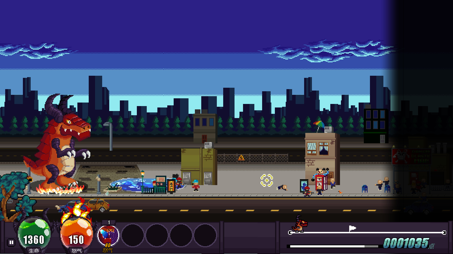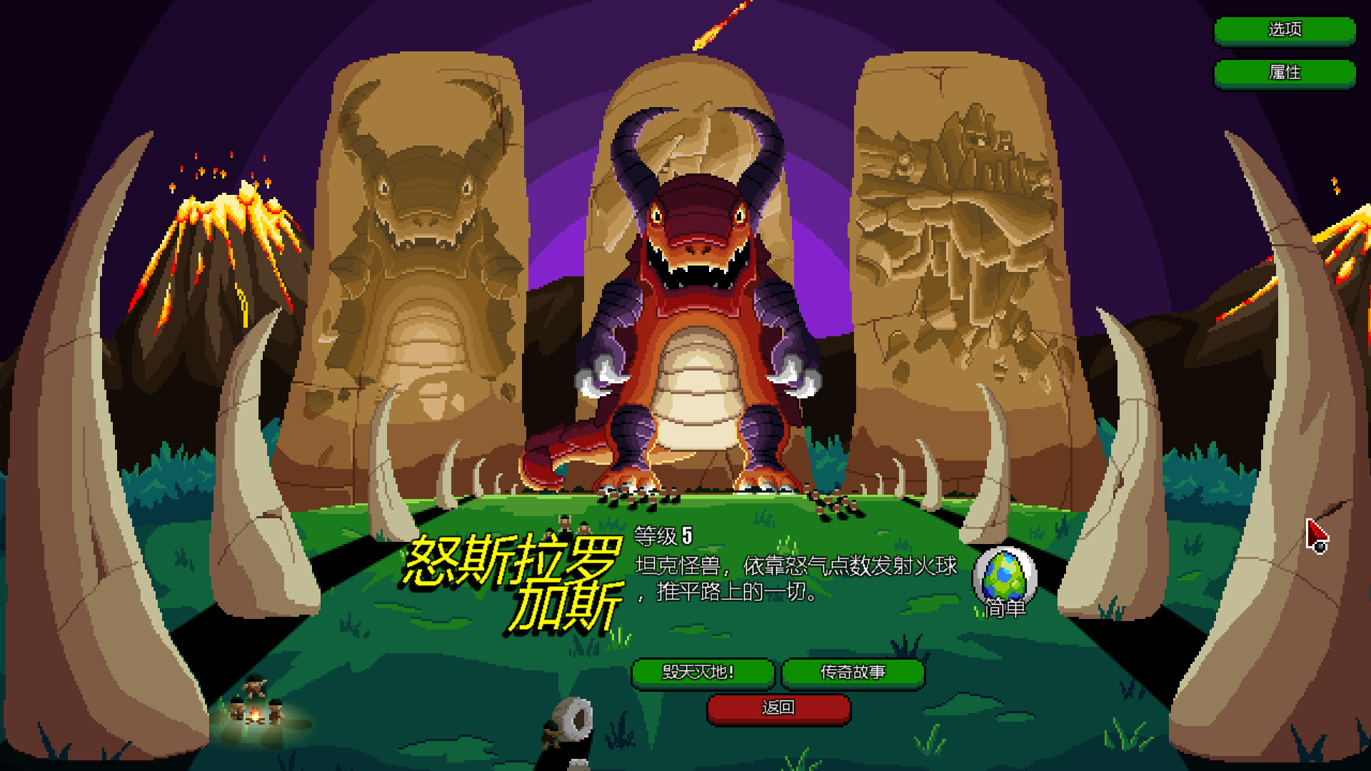 这是一款 2D 像素风破坏游戏,灵感来自经典怪兽电影《哥斯拉》、《金刚》。