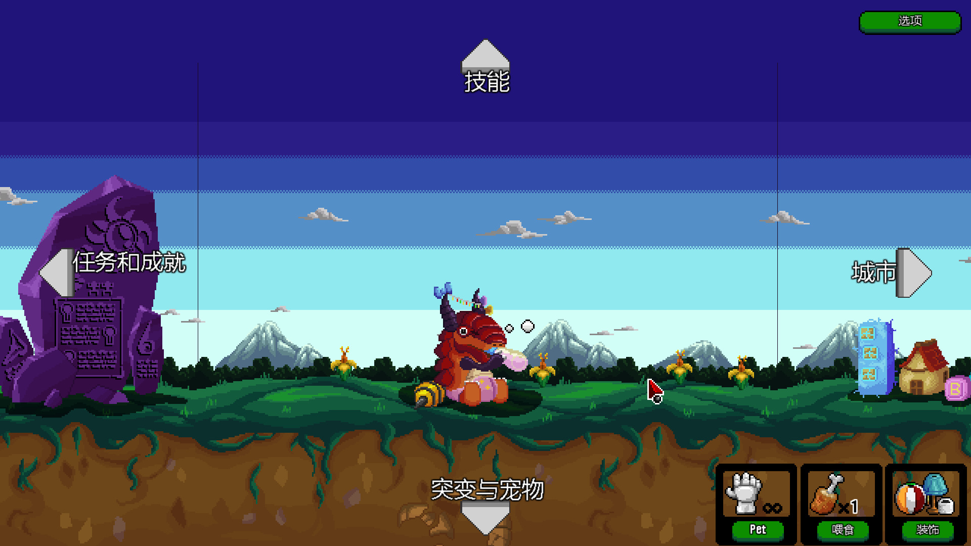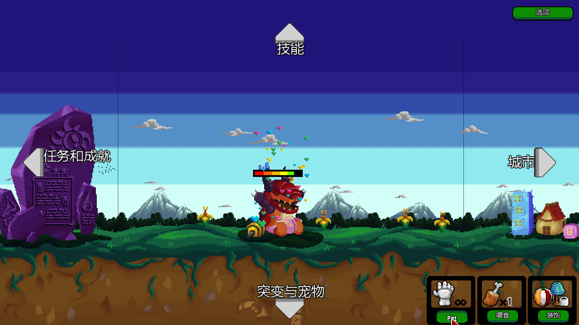 我们可以根据之前的战斗获得的积分来养成怪兽,进行喂食,当然没有食物也没问题,还有免费的抚摸(当然是有上限的)。