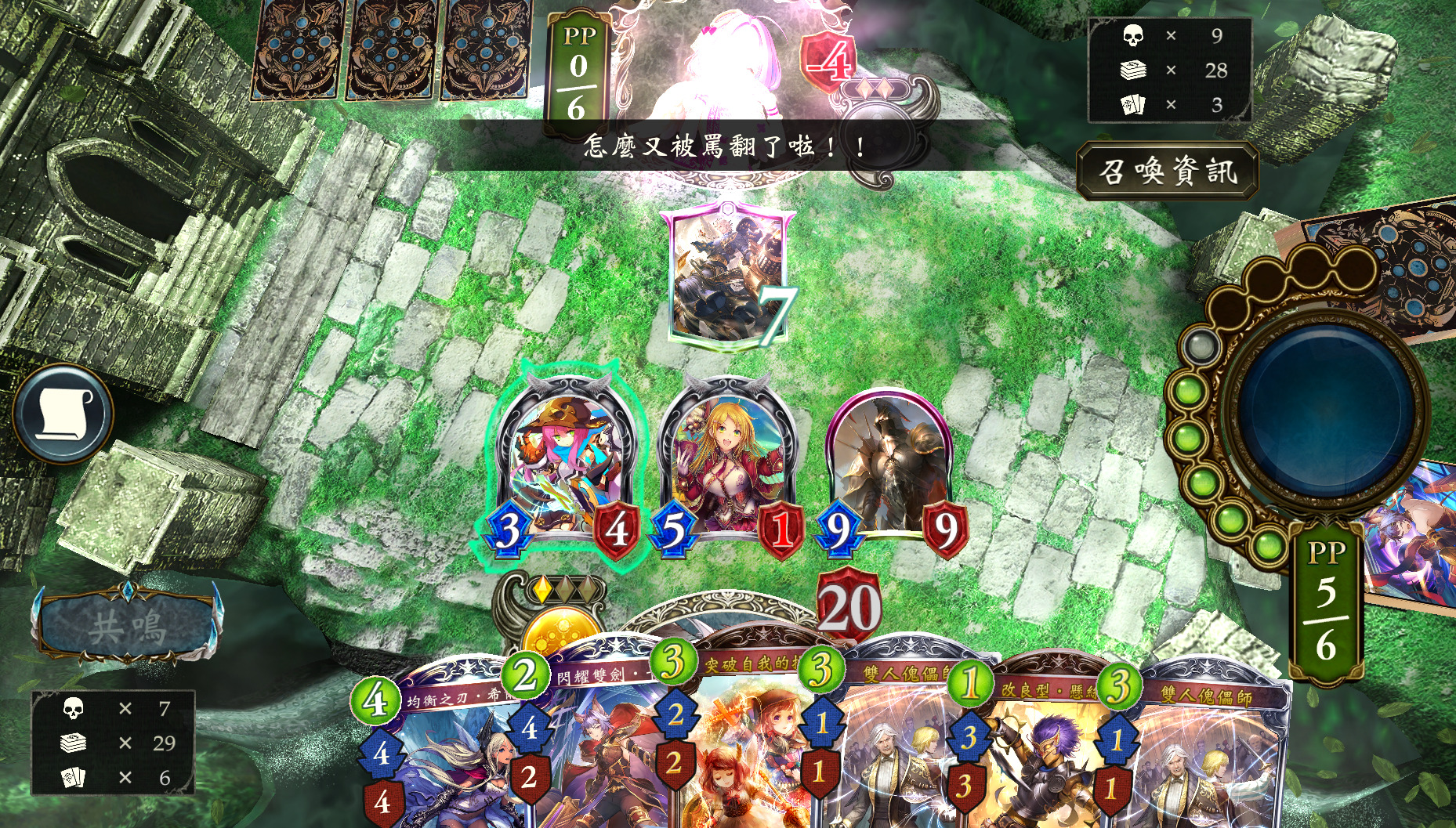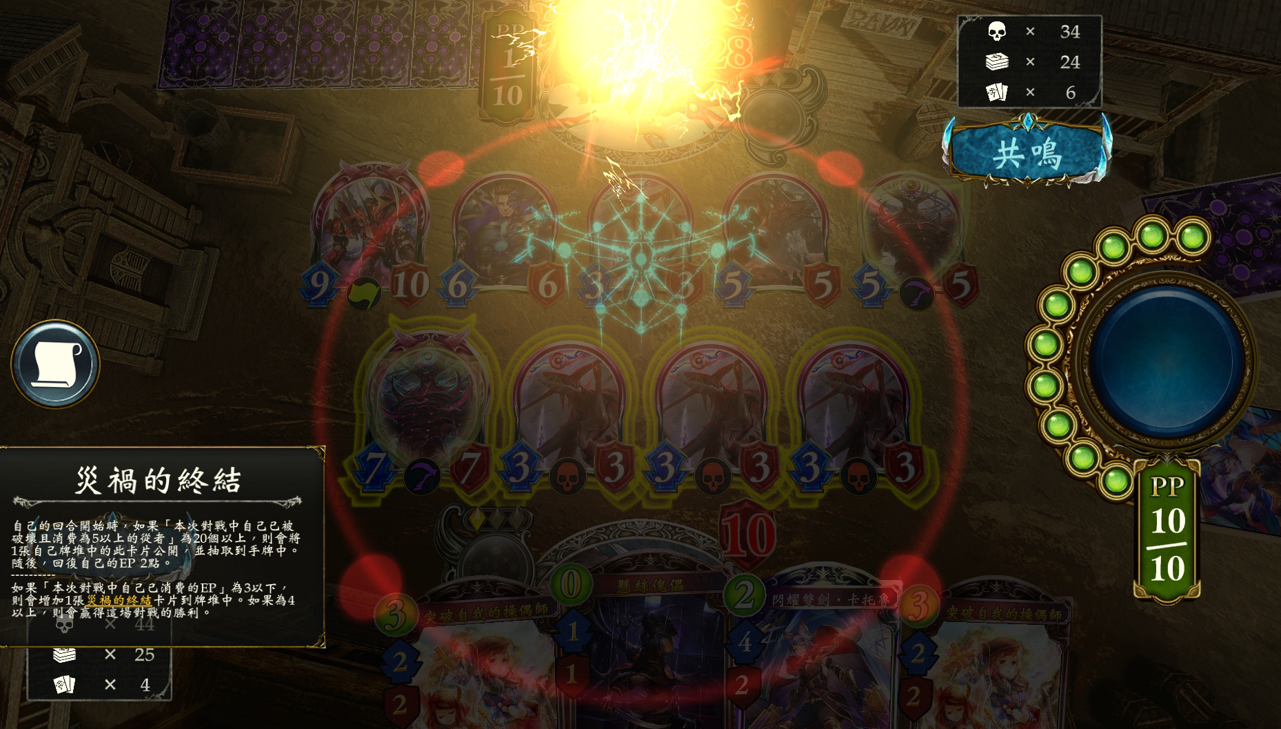 第2回合可以使用伪相操偶师,为后续回合的场面争夺做铺垫。也可以使用导引之钟·叮当天使,尝试过牌并调整共鸣。还可以使用灾祸,寻找克罗萨斯。对手场上有随从的话,可以使用闪耀双剑·卡托鲁减少受伤。无事可做或不适合使用以上动作的话,可以卖掉妄想少女A·璐娜露。