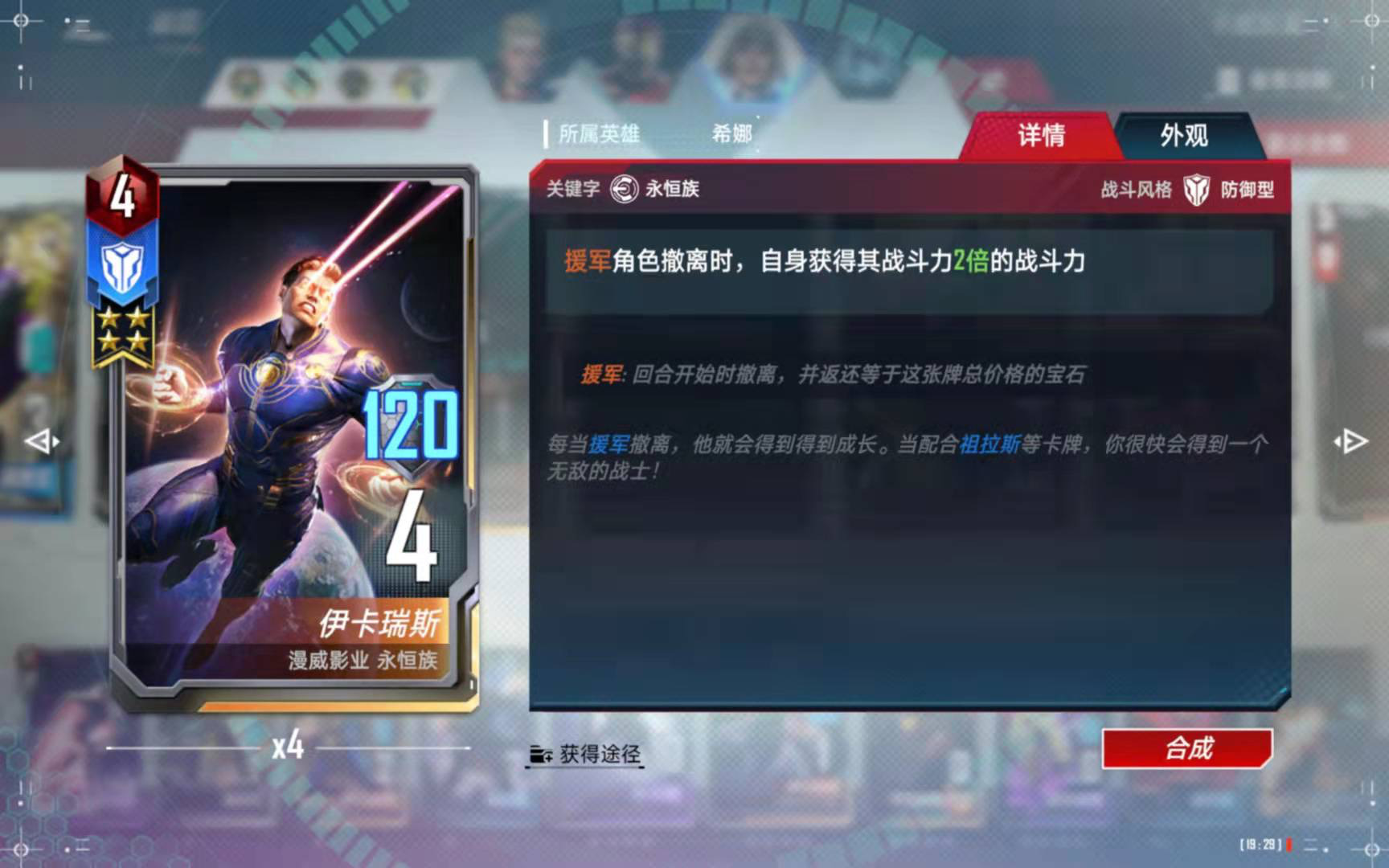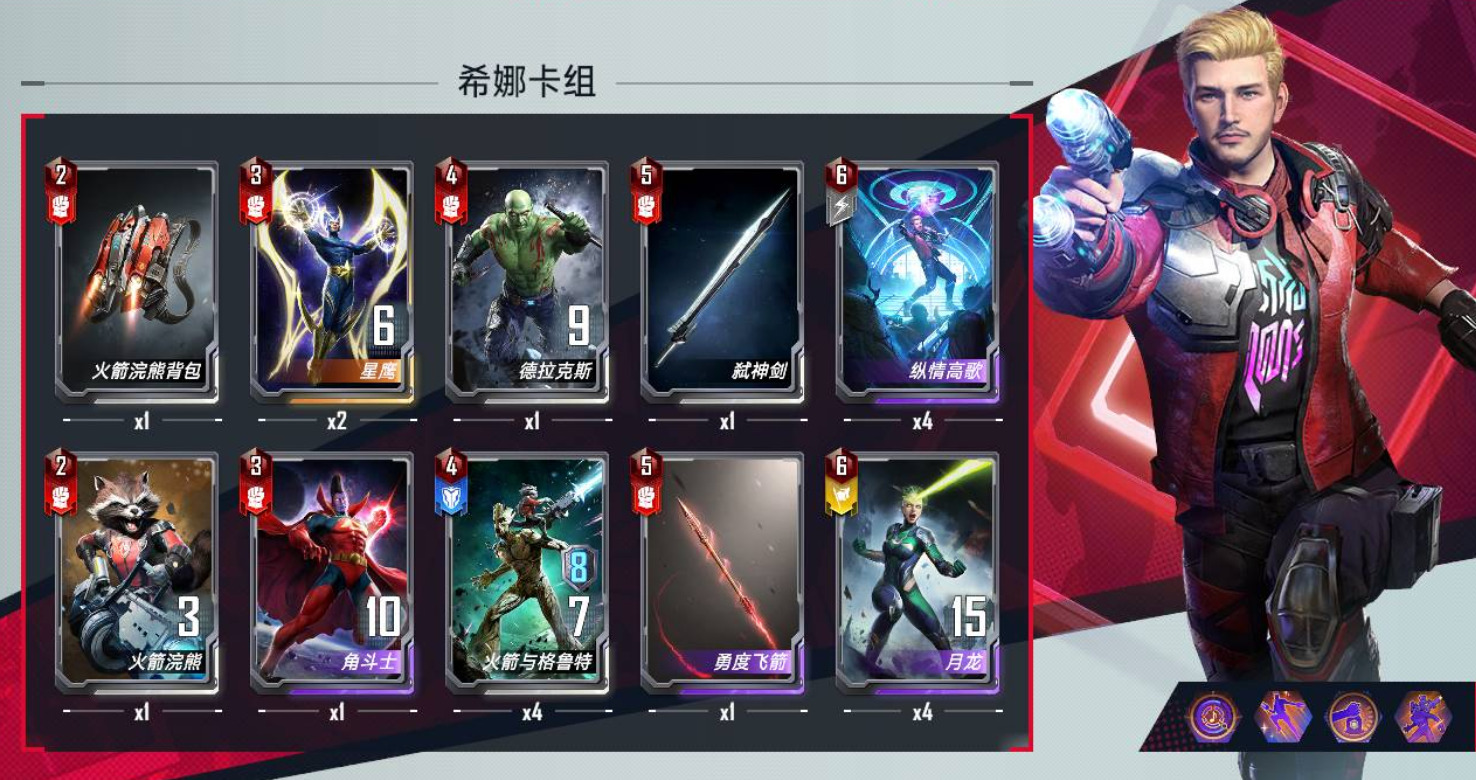 - 因为这套卡里满编了4费援军格鲁特,而且星鹰2星胜利回手不仅可以赚经济还可以腾格子给到场上更多的操作空间,而且星鹰可以帮助我们更快的过滤星爵卡牌。所以这里要专门提一下2星星鹰是这套卡组经济的一个重要关键点。