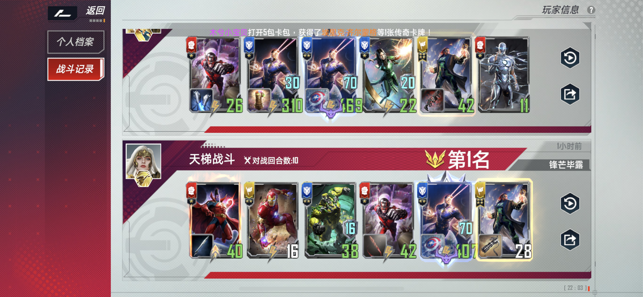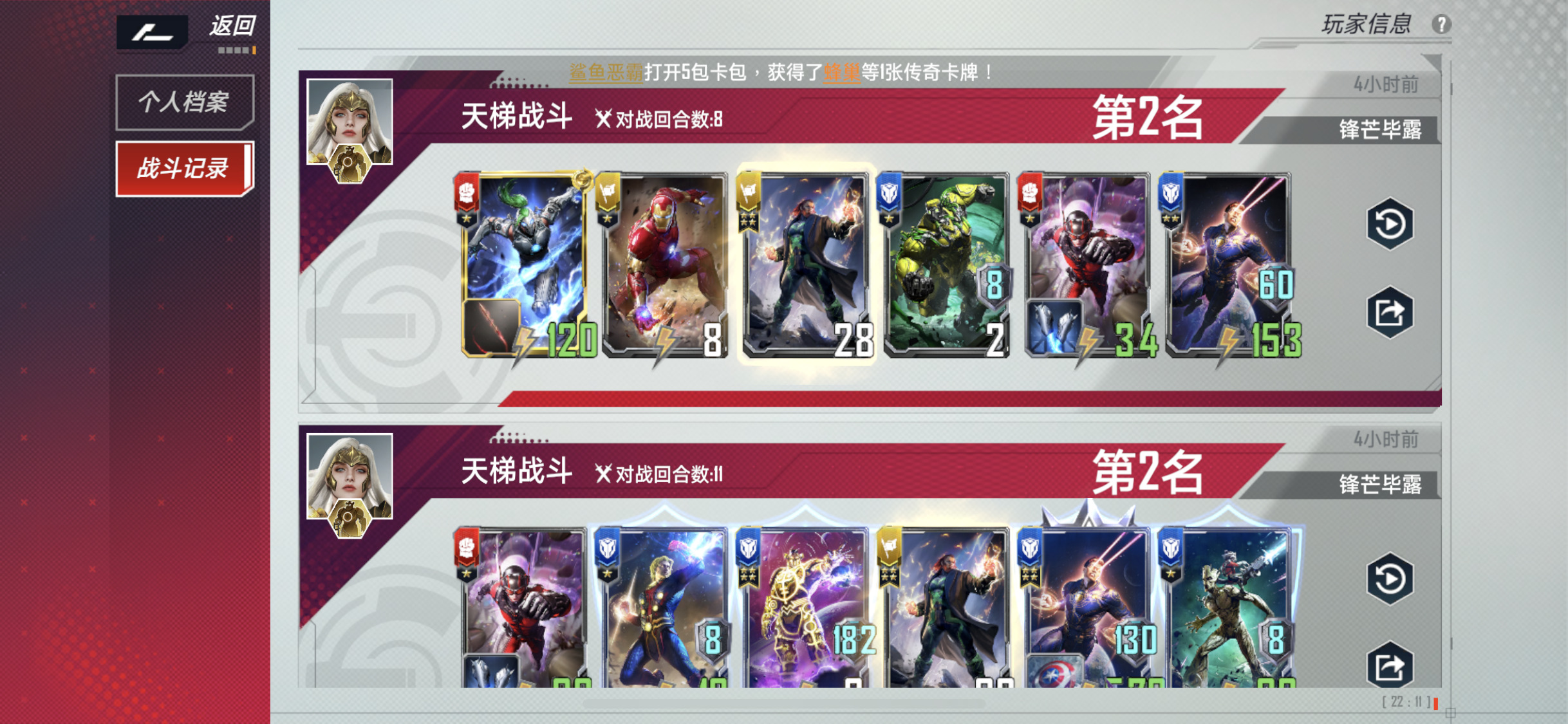 - 因为卡组整体是一套保战力的打法,上5本也可以去找第二核心鞭狂、蚁人等还有关键武器