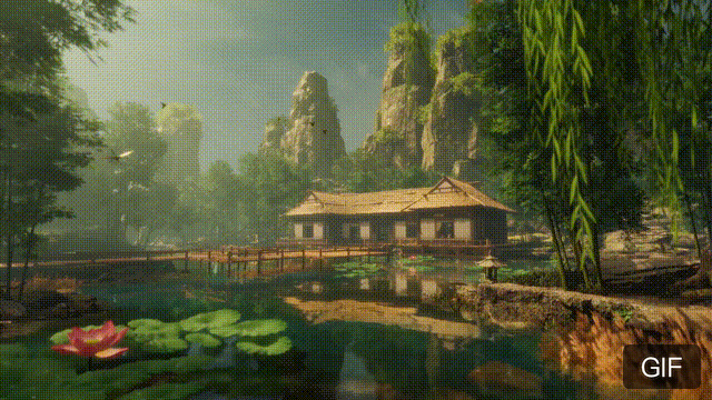 你即将闯荡的国风江湖,地图更为广阔,场景也更显生动。当玩家行走在渝州城外的乡间道路时,视野所及之处,是一碧如洗的蓝天、波光粼粼的水面、兀自盛开的荷花与轻轻摇曳的竹林。